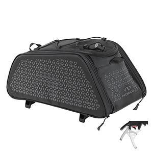 Gepäckträgeraufsatztasche mit reflektierendem Dekor und großem Volumen mit ausklappbaren Seitentaschen.<?xml:namespace prefix = "o" ns = "urn:schemas-microsoft-com:office:office" />